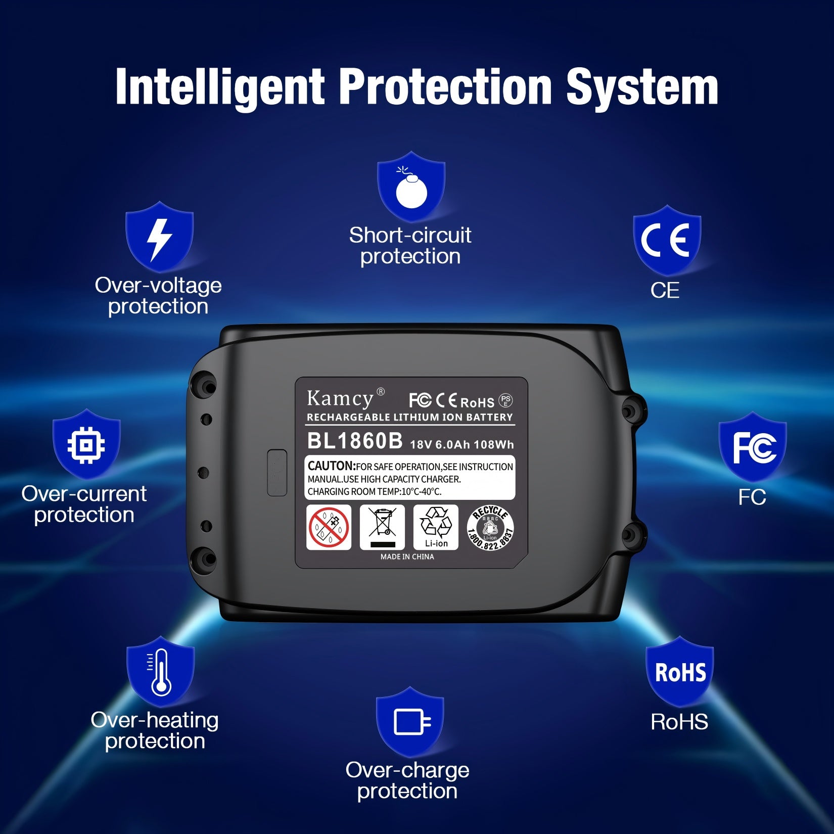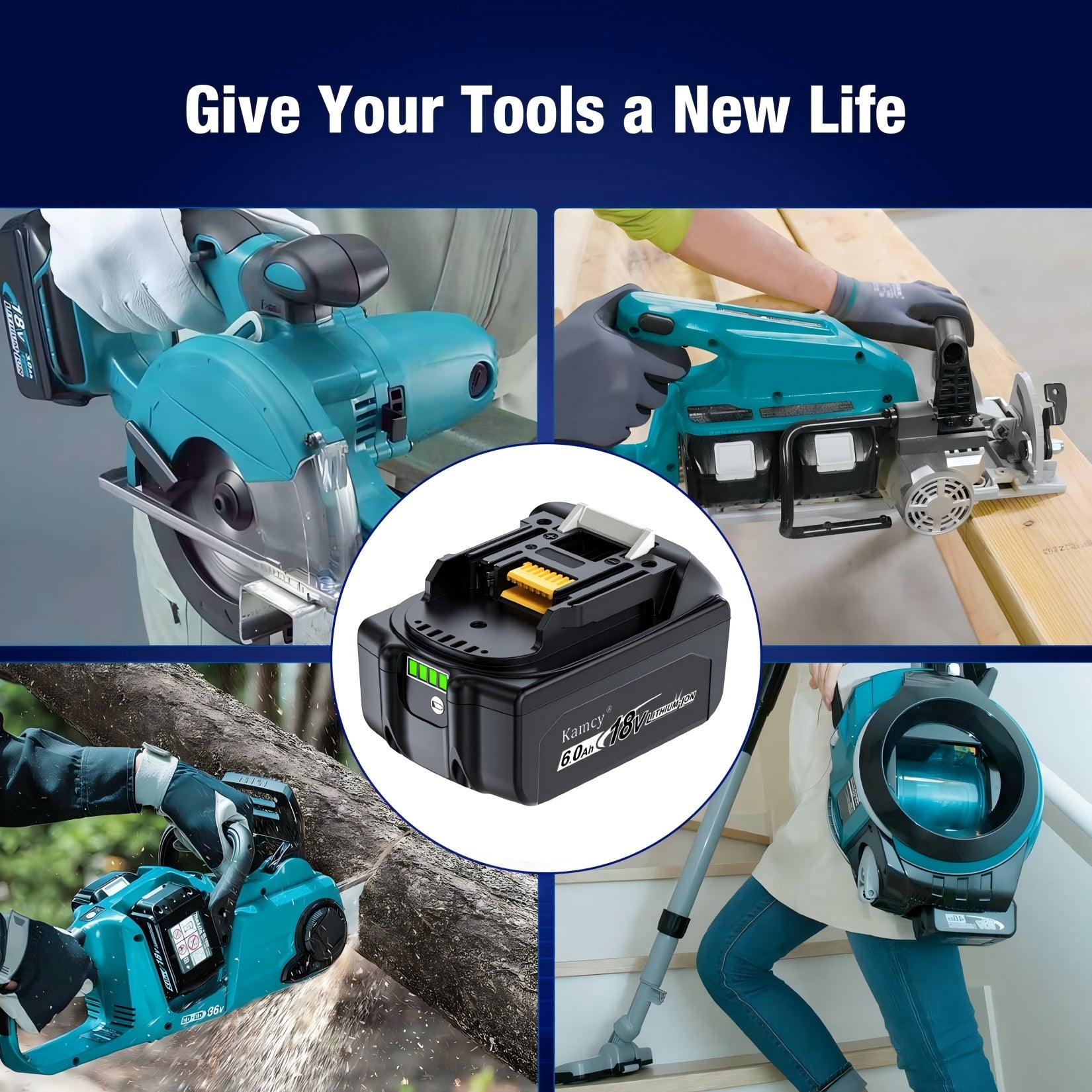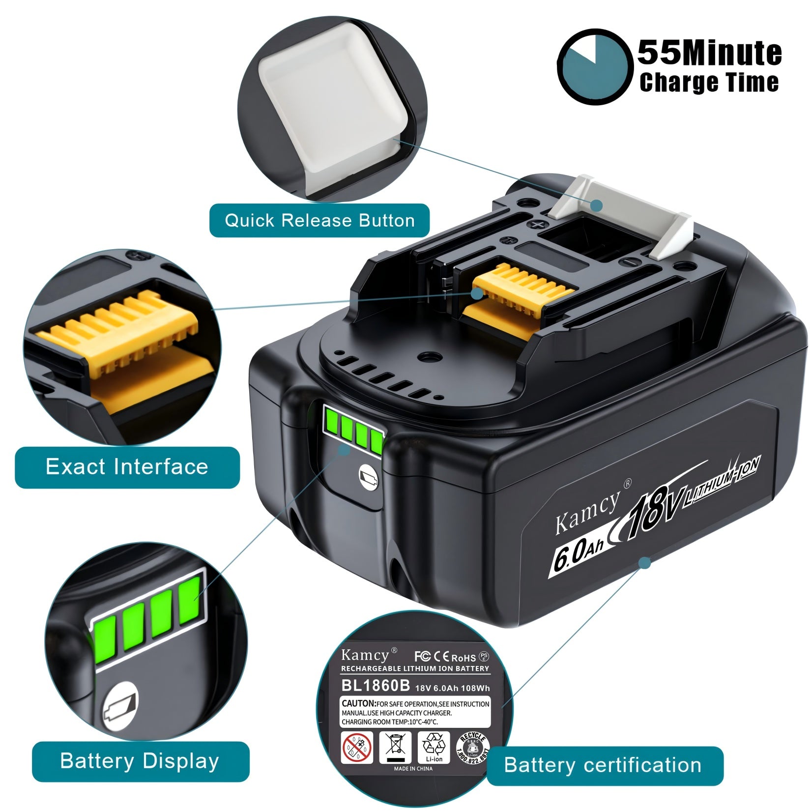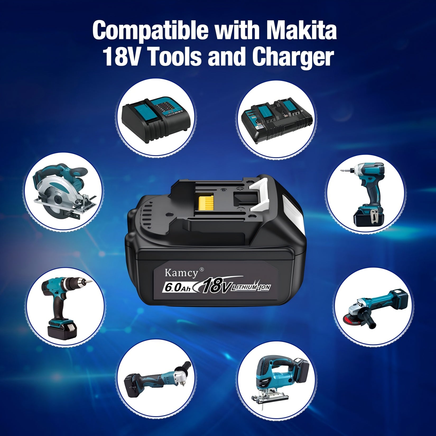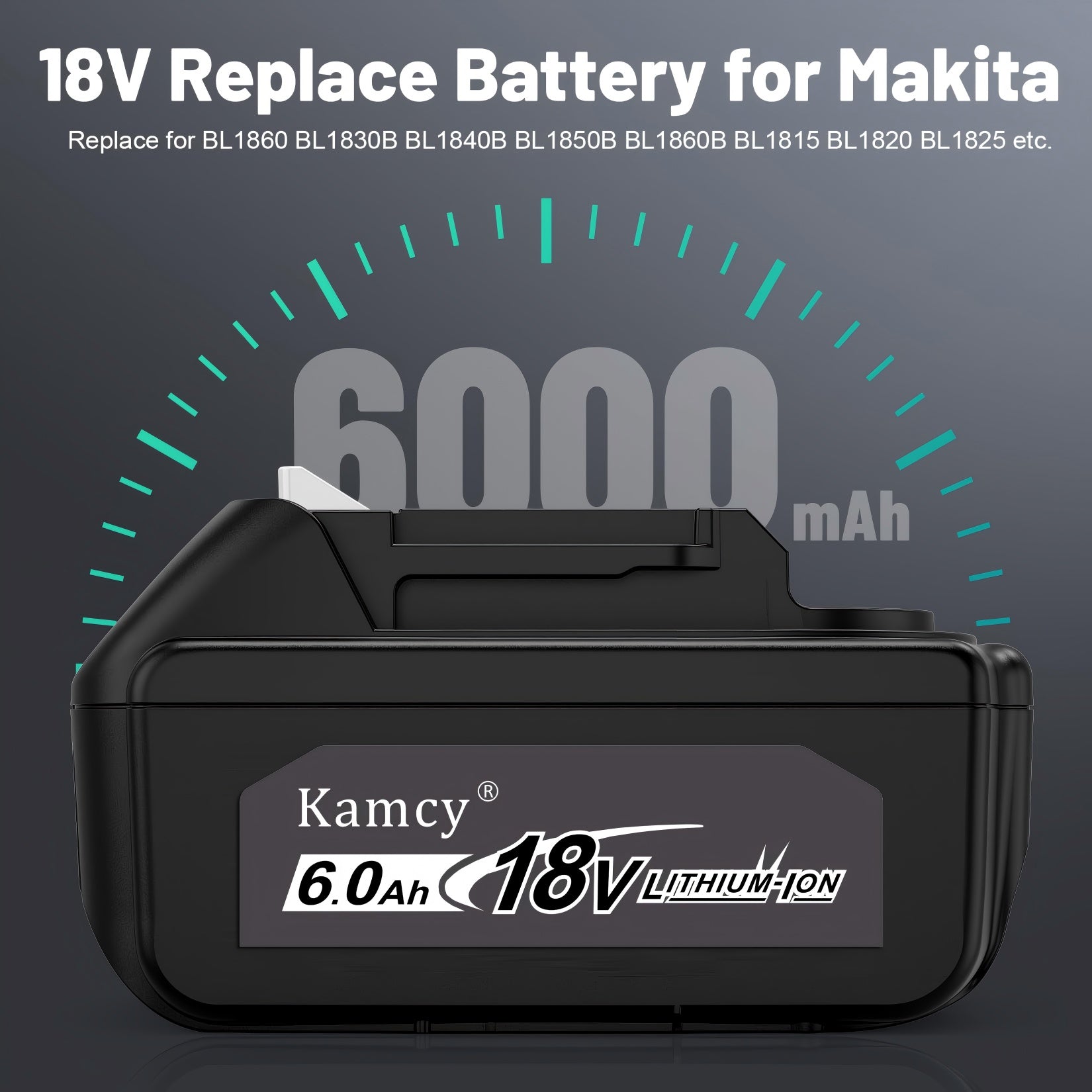 KAMCY 6.0Ah 18-Volt Replace for Makita 18V Battery BL1860B, Replacement Batteries Compatible with Makita BL1860 1850B 1840B 1830B BL1820, Fit with Original makita 18V Battery Chargers (Ultimate)